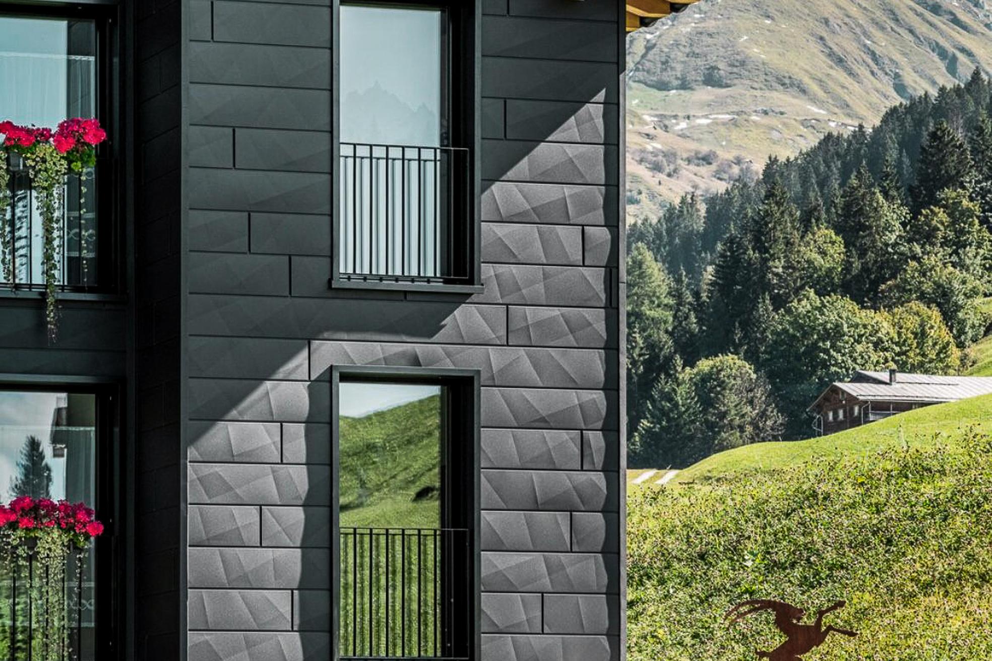 Die Kombination aus warmem Holz und einer schwarzen Aluminiumfassade verleiht dem Haus eine moderne, klare Präsenz. Die Materialwahl sorgt nicht nur für ein elegantes Erscheinungsbild, sondern auch für Witterungsbeständigkeit, Langlebigkeit und Pflegeleichtigkeit – entscheidende Vorteile im alpinen Klima. So entsteht ein Bauwerk, das Ästhetik und Funktion in Balance bringt und sich zugleich harmonisch in die Landschaft einfügt.